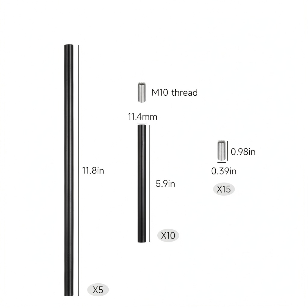 Lnrueg threaded extension rods are engineered to deliver reliable support for a variety of light fixtures, enhancing the stability and flexibility of your home lighting systems. Crafted from high-quality iron metal, these rods measure 11.8 inches in length and feature a sleek black finish that resists oxidation and corrosion, ensuring long-lasting performance. The package includes 15 rods and 15 matching threaded connectors, all designed with universal M10 thread compatibility for seamless integration with most household light fixtures. With an item weight of 1.56 pounds and compact dimensions, these rods are built to handle significant weight while maintaining a low profile in your lighting arrangements.