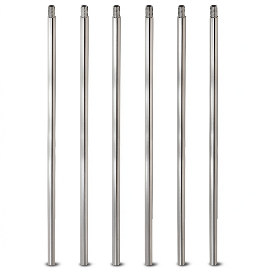 The rods feature M10 x 1mm fine threads, which are compatible with most common lighting fixtures. It’s recommended to verify your existing fixture’s thread size before purchase to ensure proper fit.