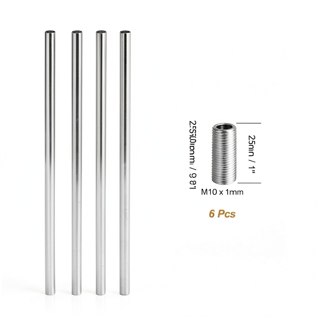 The rods feature M10 x 1mm fine threads, which are standard for many lighting fixtures and ensure a secure fit.