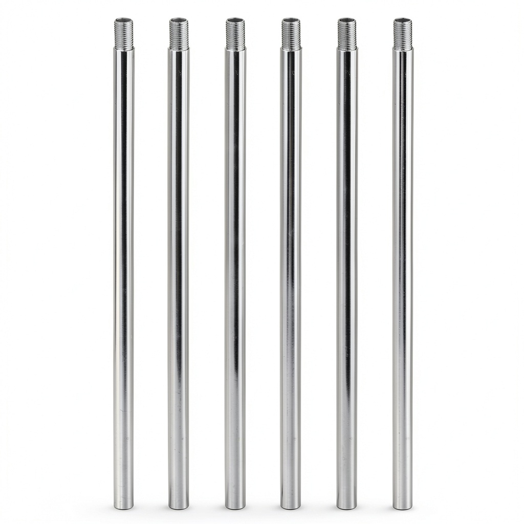 Each set contains six lamp extension rods and corresponding pipe nipples, suitable for multiple installations or replacements.